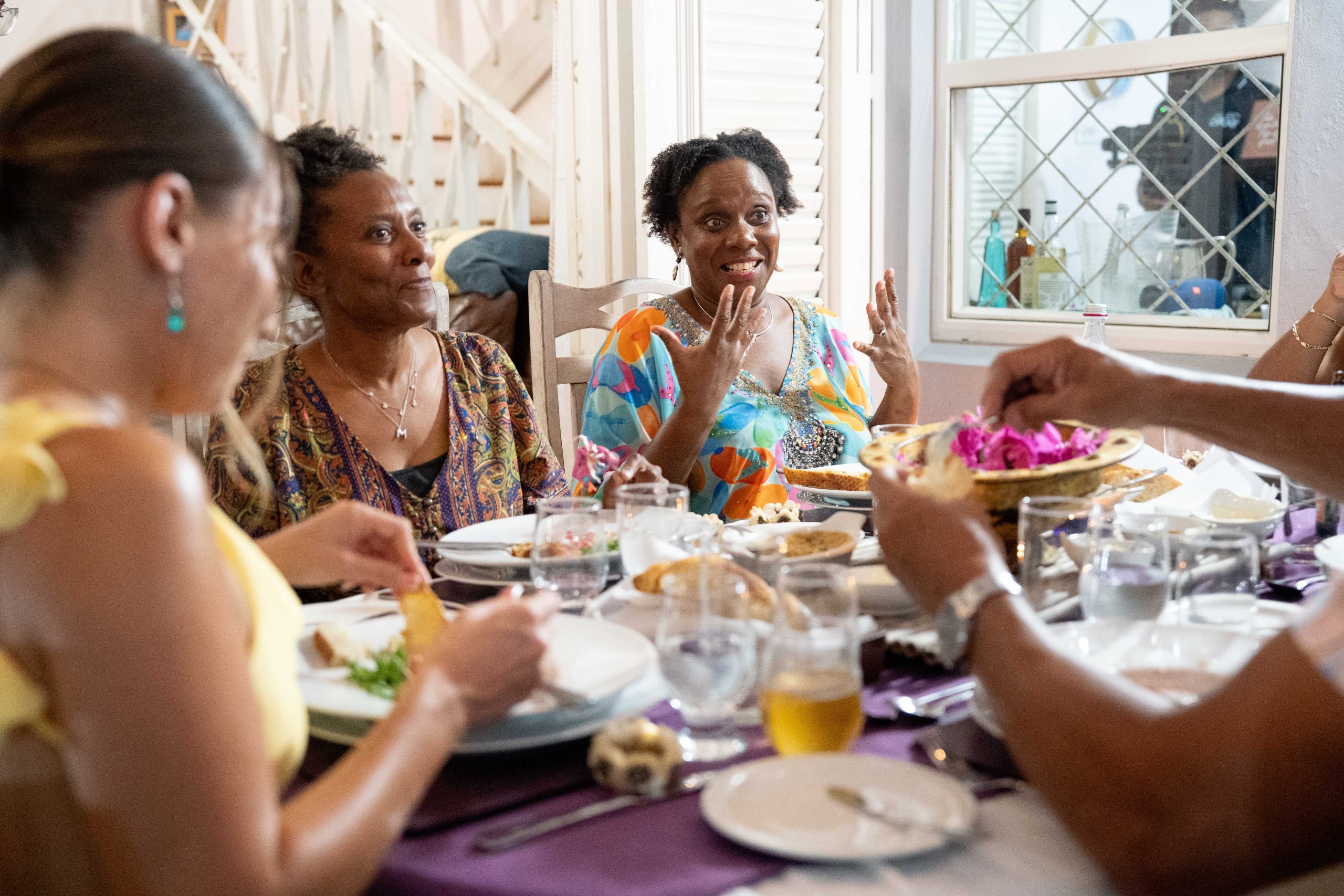 A short pause after the main will allow for sharing photos or anecdotes about something uniquely Bajan. Dessert will be family-style, with sweet bites to sample. The evening ends with coffee or tea a small gift as a memento of the experience.